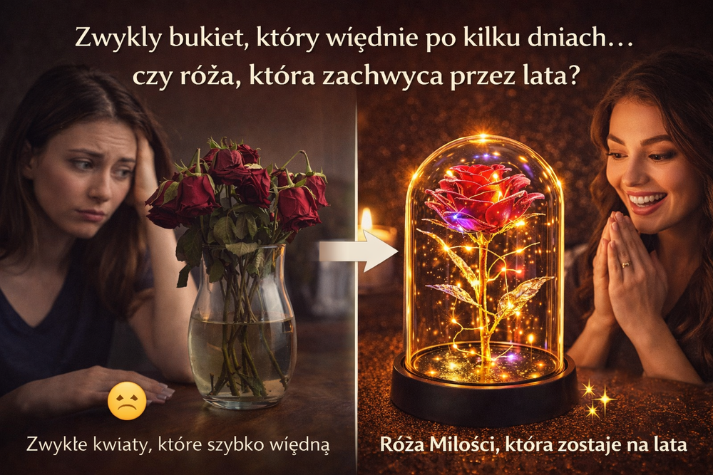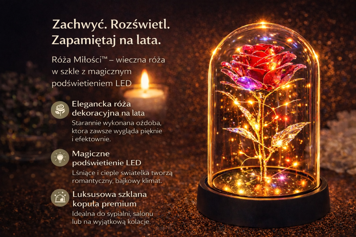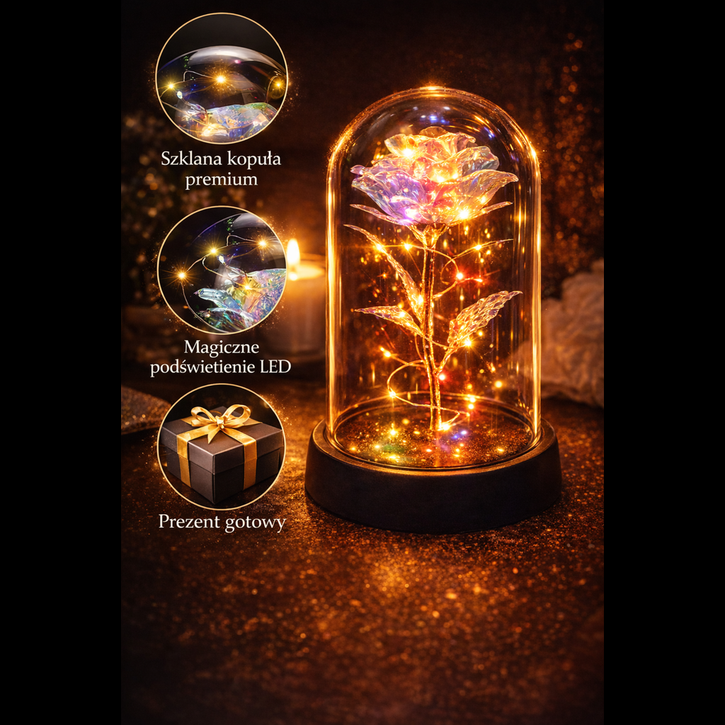 🌹 Róża Miłości – wieczna róża w szkle z podświetleniem LED